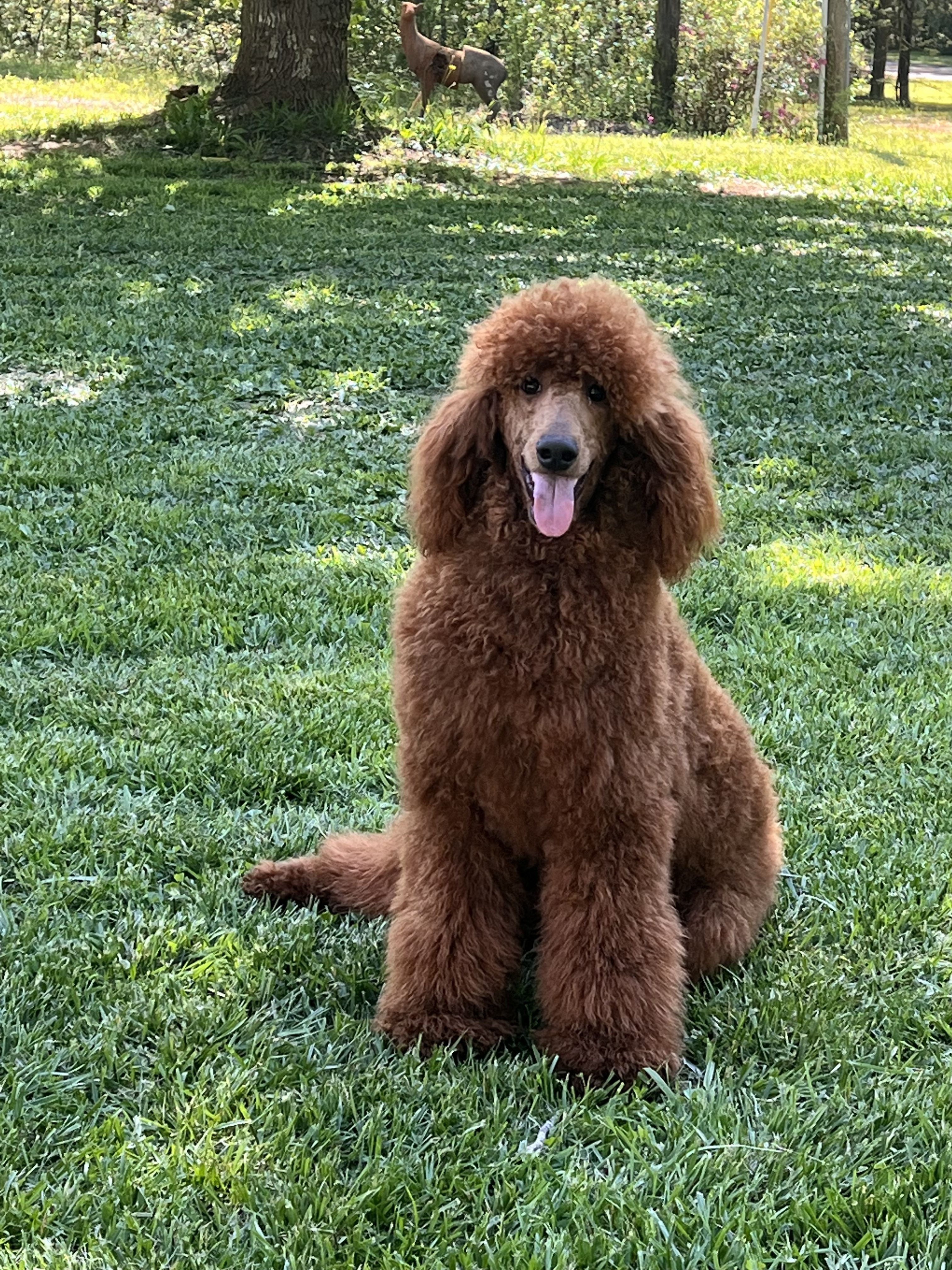 Meet Axl, our gorgeous dark male who comes from a wonderful family line. He is an AKC Registered RED Standard Poodle, and the only male we have in this group of poodles! We love his dark coat and happy personality. He is a really good boy!