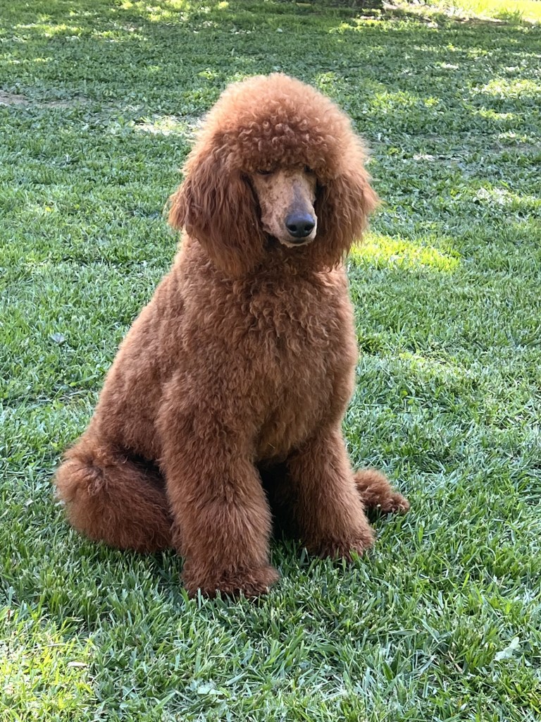 Our very own Remi and Axl upcoming litter to be born November 22, 2024 with a go home date of January 17, 2025. Axl our sire is a beautiful dark red poodle with a fantastic family line, and Remi serves our daughter as a service dog. Below are pictures of them.